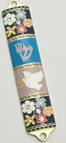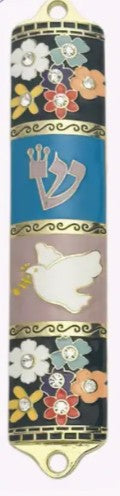 MEZUZA DE METAL CON RELIEVE FLORAL