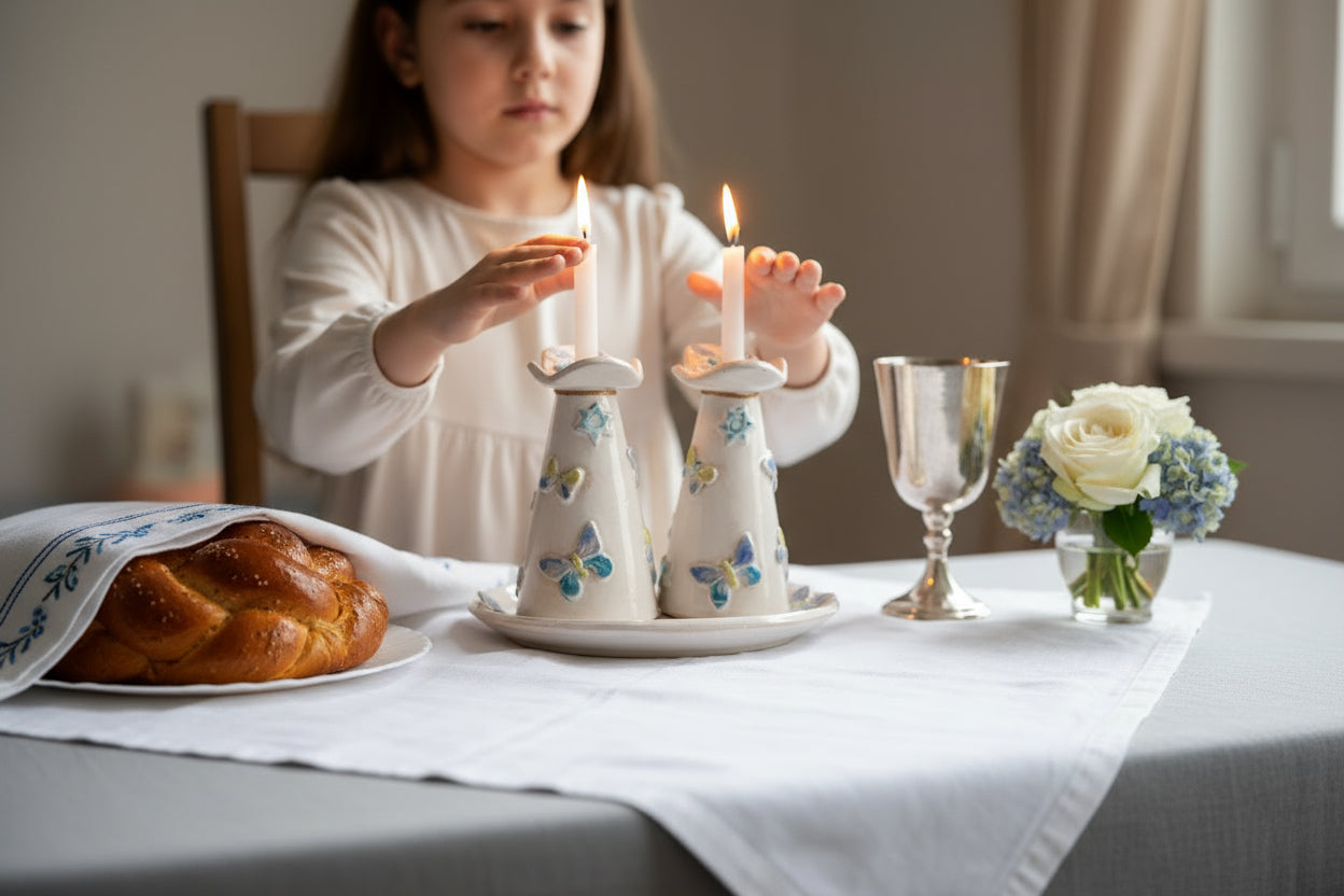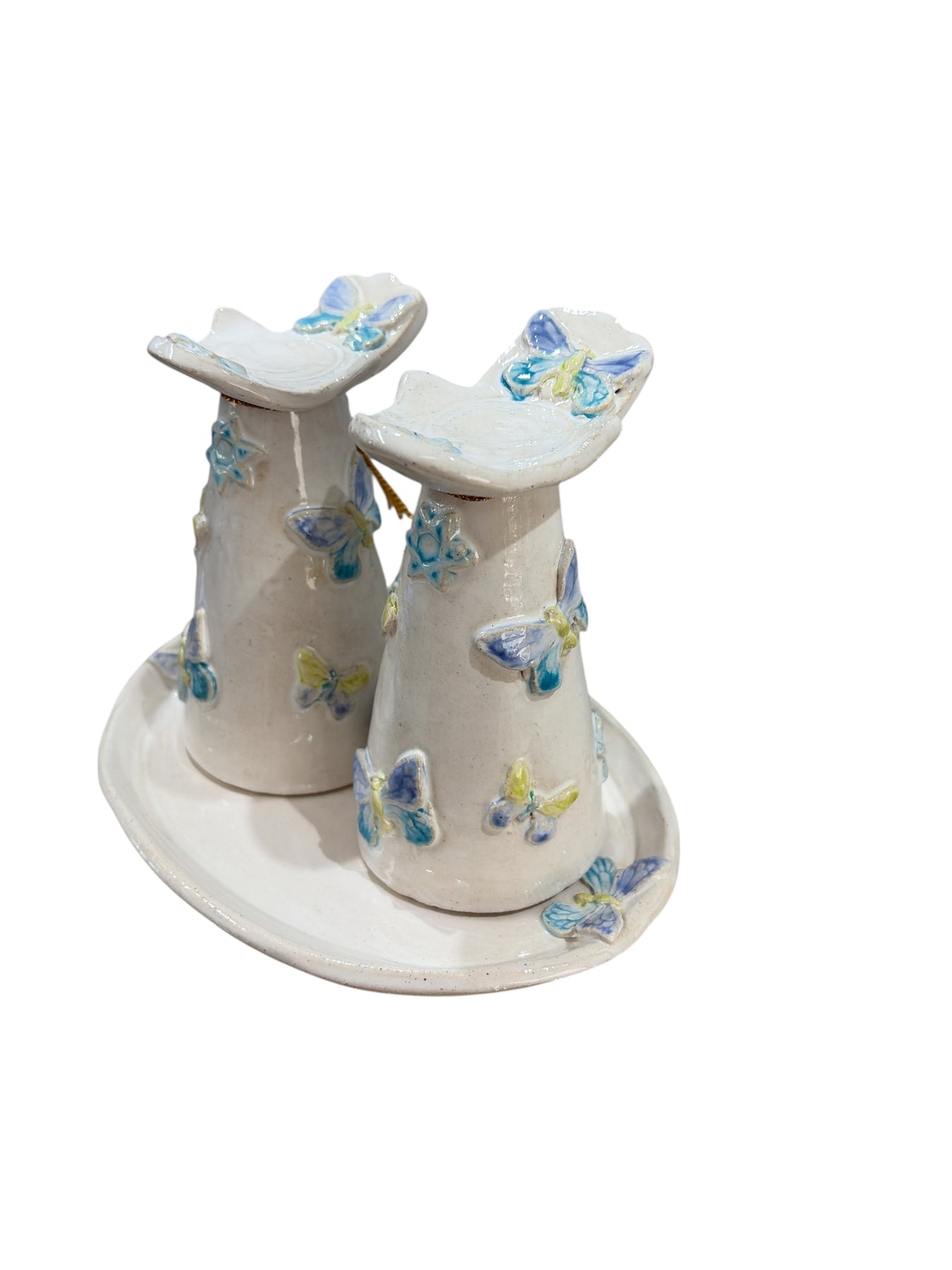 SET DE CANDELABROS CON BANDEJA DISEÑO HAMSA Y MARIPOSAS